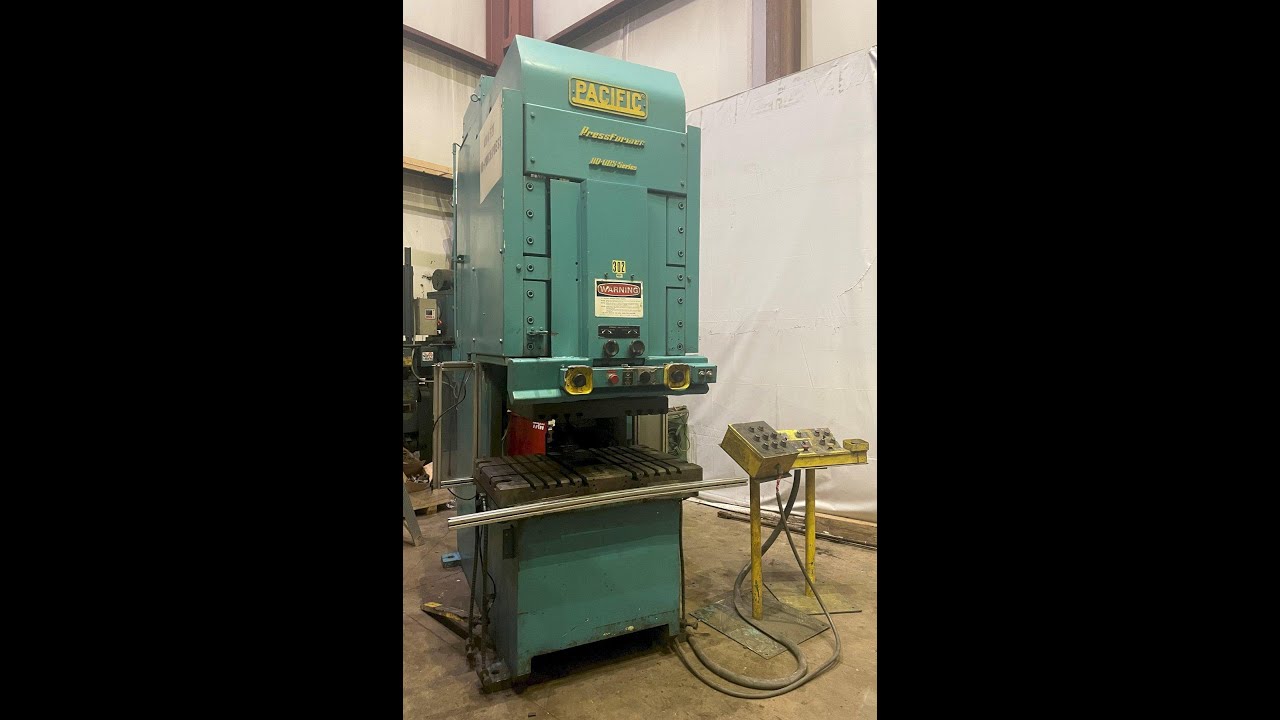 SERIAL ................... 9069MODEL .................... 110 PF-OBSNEW ...................... 1981CAPACITY ................. 110 TONSTROKE ................... 10"OPEN HEIGHT .............. 15.25"CLOSED HEIGHT ............ 5.25"RAM SIZE ................. 21" X 28"BED SIZE ................. 27" X 42"BED BOLSTER HEIGHT ....... 4"BED & RAM T-SLOTTED ...... YESTHROAT ................... 14.5"BETWEEN HOUSINGS ......... 29"ADVANCE SPEED ............ 324 & 120 IPMPRESSING SPEED ........... 42 IPMRETURN SPEED ............. 204 & 78 IPMPASSLINE HEIGHT .......... 40"MOTOR .................... 30 HPKNOCK OUT CYLINDER ....... YESCUSHION .................. 30 TONTONNAGE CONTROL VALVE .... YESTONNAGE INDICATOR GAUGE .. YESOIL COOLER ............... YES