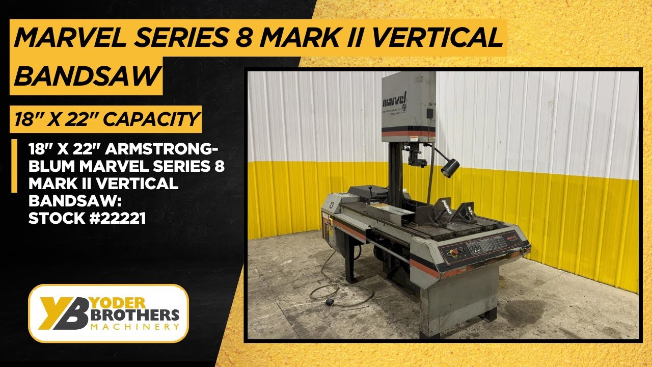 CAPACITY .................... 18" X 22"CAPACITY AT 45 DEGREES ...... 22" X 12-1/2"BLADE FEED PRESSURE ......... 0# TO 140#BLADE SPEEDS (VARIABLE) ..... 50 TO 450 FPMHEAD TILTS-LEFT OR RIGHT .... 45 DEGREESWORKING AREA OF TABLE ....... 33" X 24"LENGTH OF BLADE ............. 14'6"WIDTH OF BLADE .............. 1"VISES ....................... 6"COOLANT ..................... YESMOTOR ....................... 2 HORSEPOWER