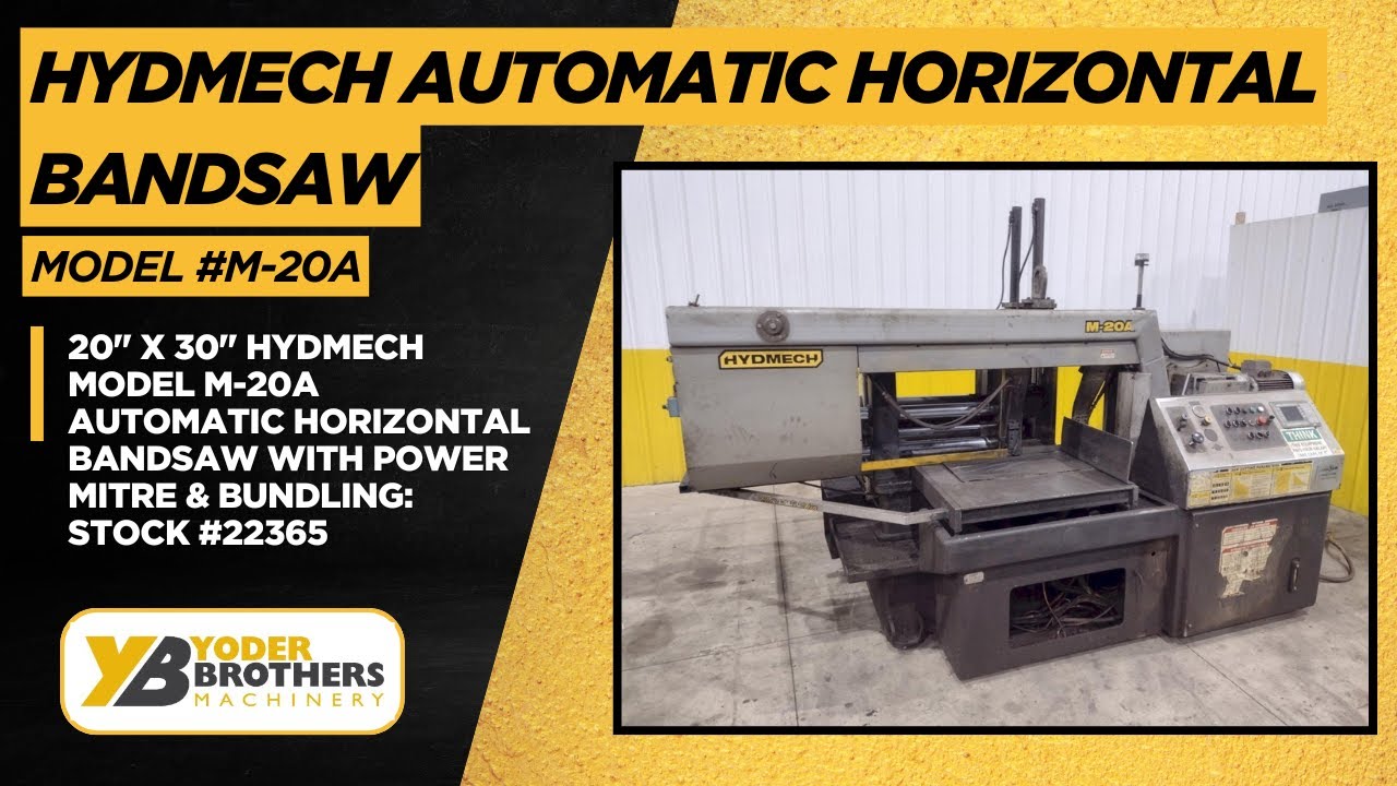 SERIAL .......................... TAB0816993MODEL ........................... M-20AYEAR NEW ........................ 2002CAPACITY @ 90 DEGREES ........... 20" W X 30" HCAPACITY @ 45 DEGREES ........... 18" W X 20" HBLADE SPEEDS (VARIABLE) ......... 50 TO 350 SFPMBLADE SIZE ...................... 20'6" X 1-1/2"CUTTING FORCE ................... 0 TO 500 LBS.CLAMPING FORCE (VARIABLE) ....... 150 TO 900 PSIMAXIMUM WORK LOAD ............... 8000 LBS.SHUTTLE STROKE .................. 0 TO 33" (220" MAXIMUM)PLC CONTROL ..................... YES