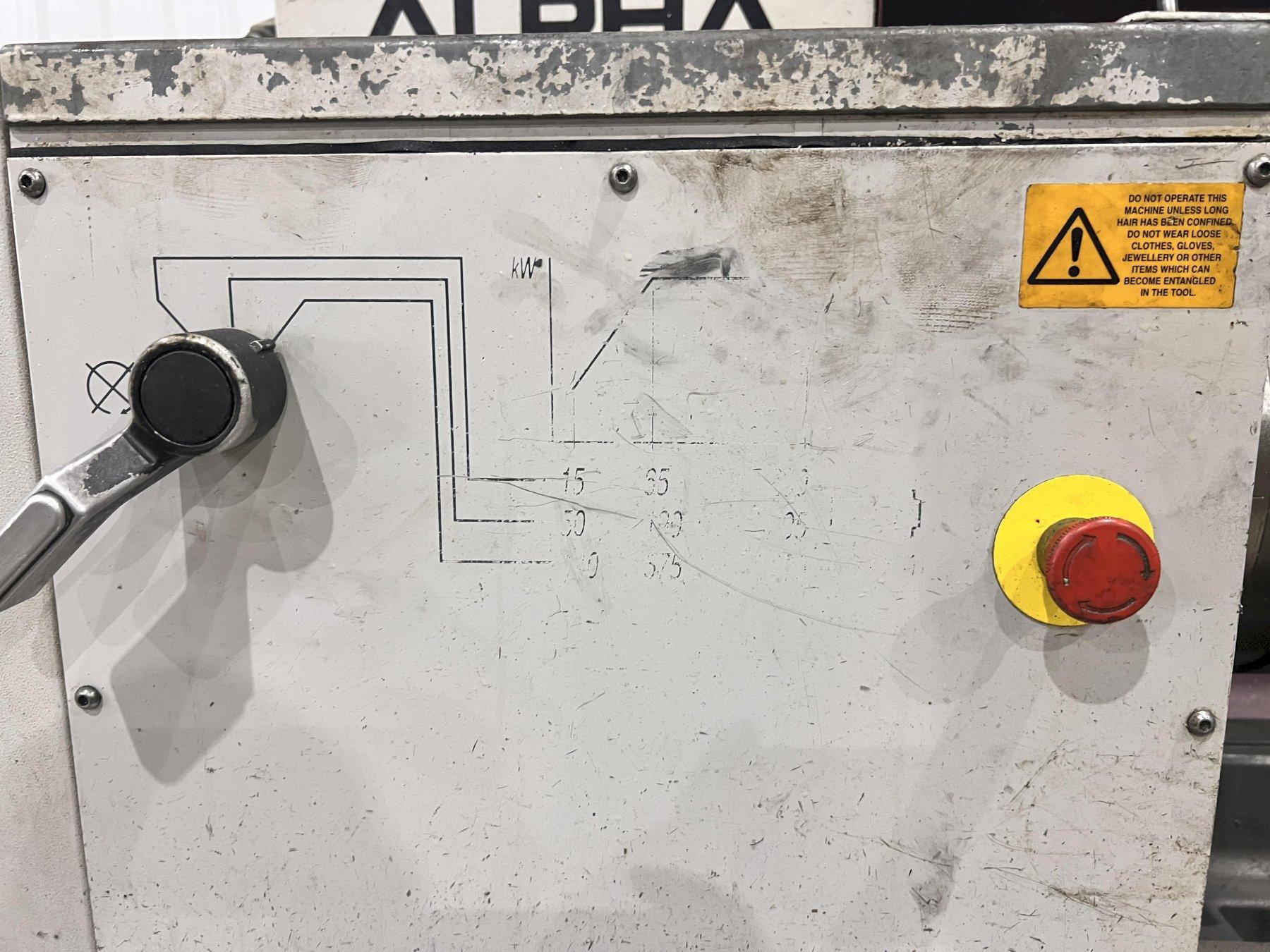 MODEL ..................... ALPHA 550SWING OVER WAYS ........... 21"SWING IN GAP .............. 33"LENGTH OF GAP ............. 12"SWING OVER CROSS SLIDE .... 14-1/2"DISTANCE BETWEEN CENTERS .. 84"SPINDLE SPEEDS ............ 15 TO 1800 RPMSPINDLE HOLE .............. 3-1/2"CHUCK ..................... 6 JAW CHUCKSTEADY REST ROLLER TYPE ... 9-1/2"CONTROL ................... FANUC-ALPHAHARD WAYS ................. YESCOOLANT ................... YESCOOLANT PAN AND GUARDS .... YESMAIN MOTOR ................ 15 HORSEPOWER