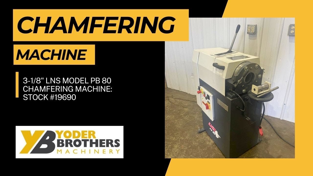 SERIAL ............................. 99007MODEL .............................. PB80YEAR NEW ........................... 1999CHAMFERING CAPACITY @ 30 DEGREE .... 1/2" TO 3-1/8"TURNING DIAMETER ................... .39 TO 2-1/2"TURING LENGTH ...................... 40"CENTERING .......................... 1/2" TO 3-1/8"SPEED #1 ........................... 230/460T/MIMSPEED #2 ........................... 700/1400 T/MIN3 JAW CHUCK ........................ 10"PIPE REST .......................... YESMOTOR HORSEPOWER ................... 2
