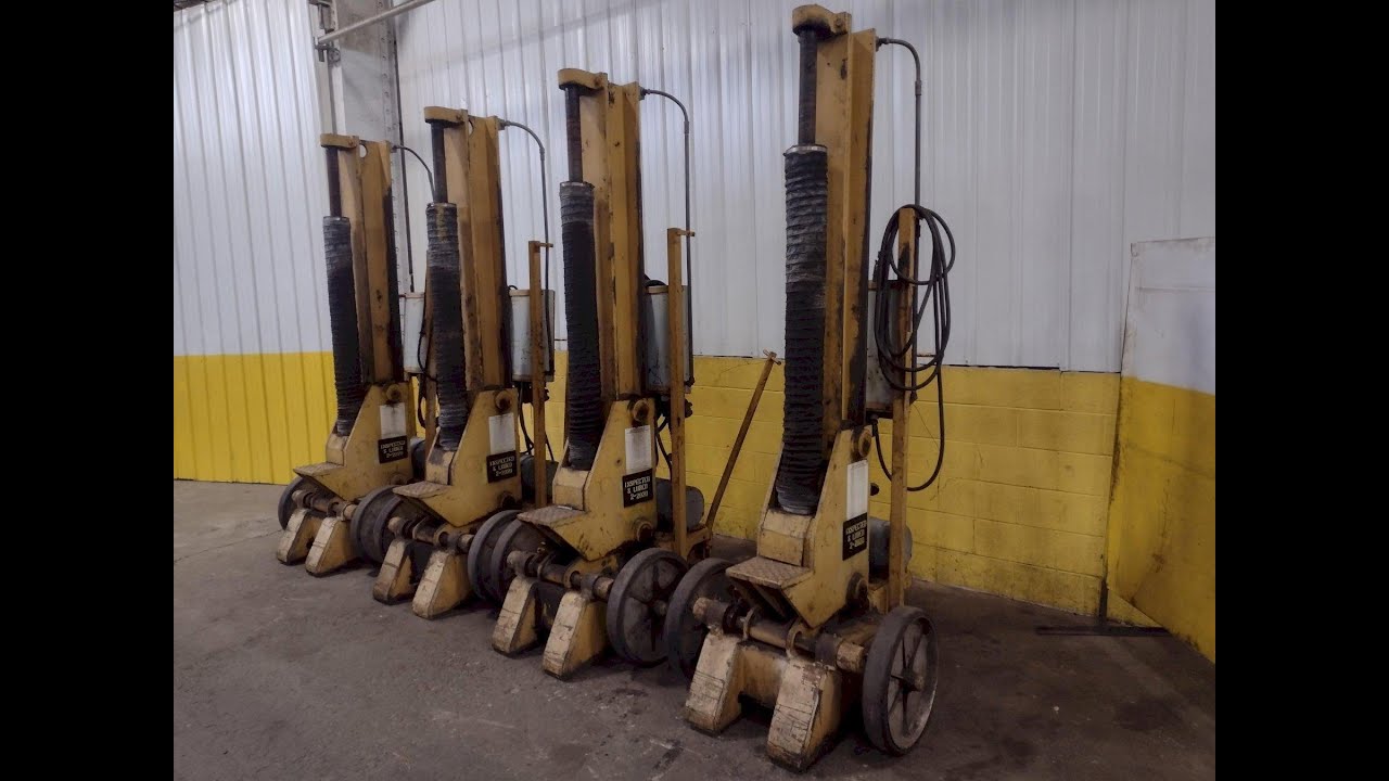 SERIAL .................................. MA1702-3-4-5CAPACITY ................................ 35 TON EACHNUMBER OF JACKS IN SET .................. 4LOWEST HEIGHT FROM FLOOR ................ 27"HIGHEST HEIGHT FROM FLOOR ............... 99"EFFECTIVE LIFT .......................... 72"LIFT SPEED .............................. 9" PER MINUTESQUARE THREAD ELEVATION SCREW DIAMETER .. 4"JACK LIFT PAD AREA ...................... 10" W X 7" DSTEERING WHEEL W / 43" T HANDLE ......... YES20" HARD RUBBER KICK UP TIRES ........... YESLAYS FLAT ON GROUND ..................... YESLIFTING PICK EYE ........................ YESUP / DOWN BUTTON CONTROL ................ YESTOP & BOTTOM LIMIT SWITCHES ............. YESELECTRIC MOTOR .......................... 7-1/2 HP