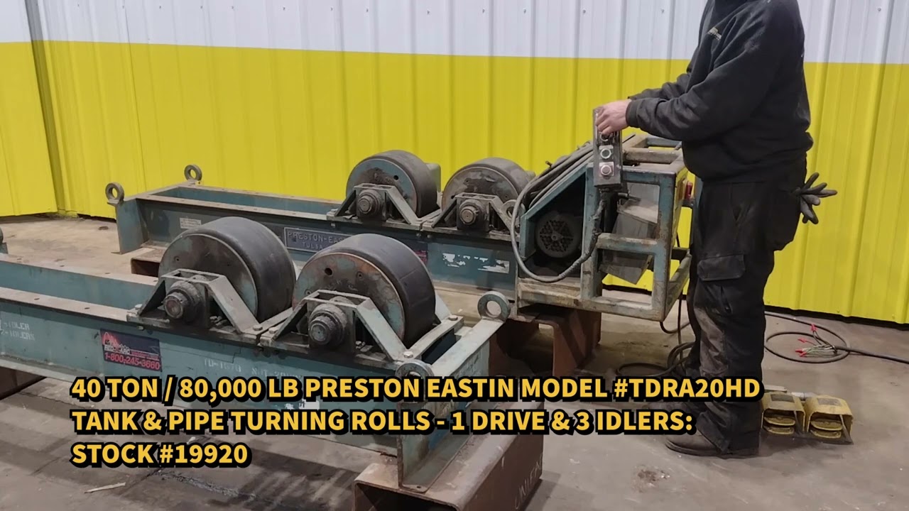 SERIAL .......NEW .......... 12/2005MODEL ........ TDRA20HD / TDRB20HD240CAPACTIY ..... 20,000 LBS PER ROLLCAPACITY ..... 80,000 LBS W/ 1 DRIVE & 3 IDLERSWHEELS ....... 7" WIDE X 15" DIAMETERCAPACITY ..... 6" TO 14' DIAMETERSPEED ........ 1.9 TO 57 IPM VARIABLEDRIVE ROLL CONTROLSDIRECTION FOOT PEDALSPEED RHEOSTAT CONTROL