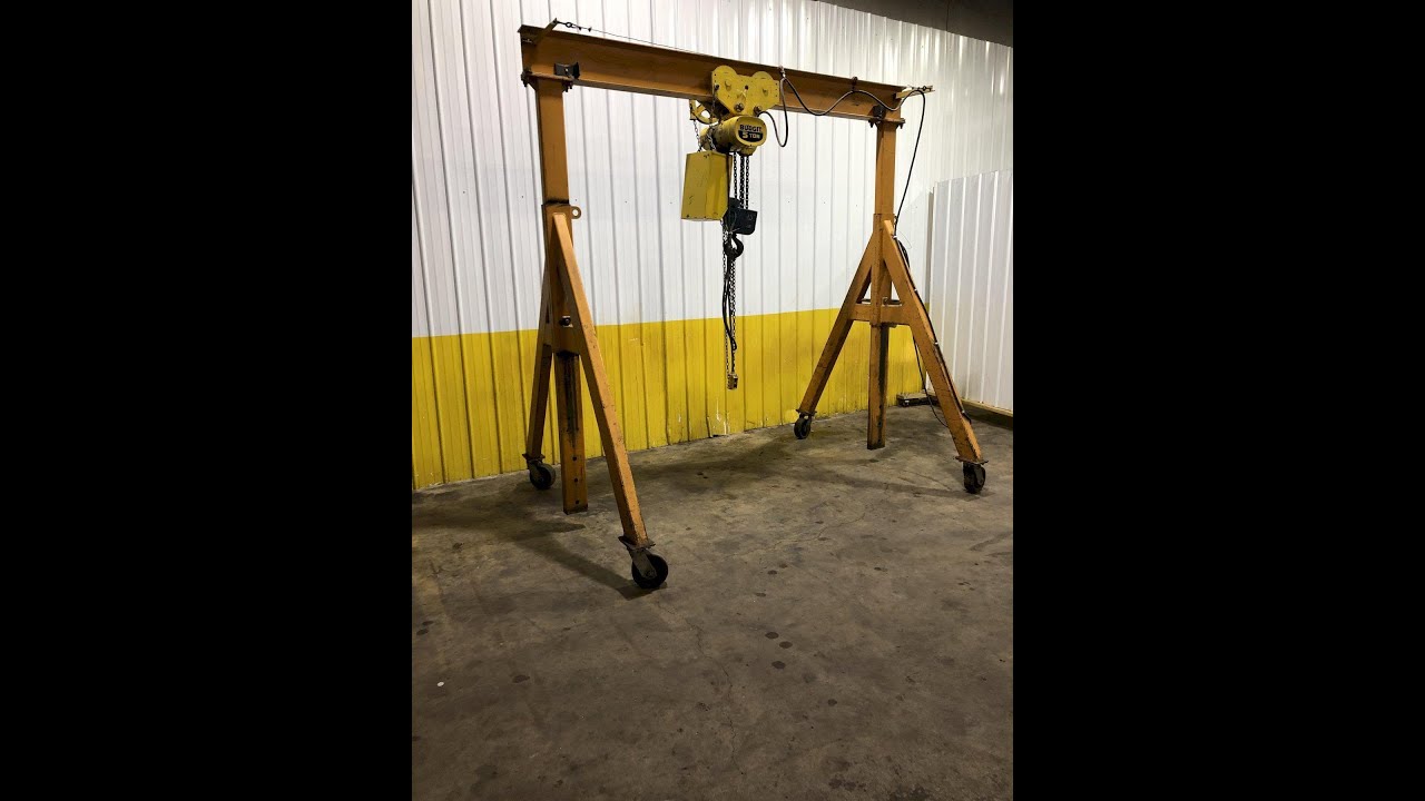 5 TON SPANCO ADJUSTABLE ROLLING GANTRY CRANE WITH 5 TON BUDGIT HOIST: STOCK #17318