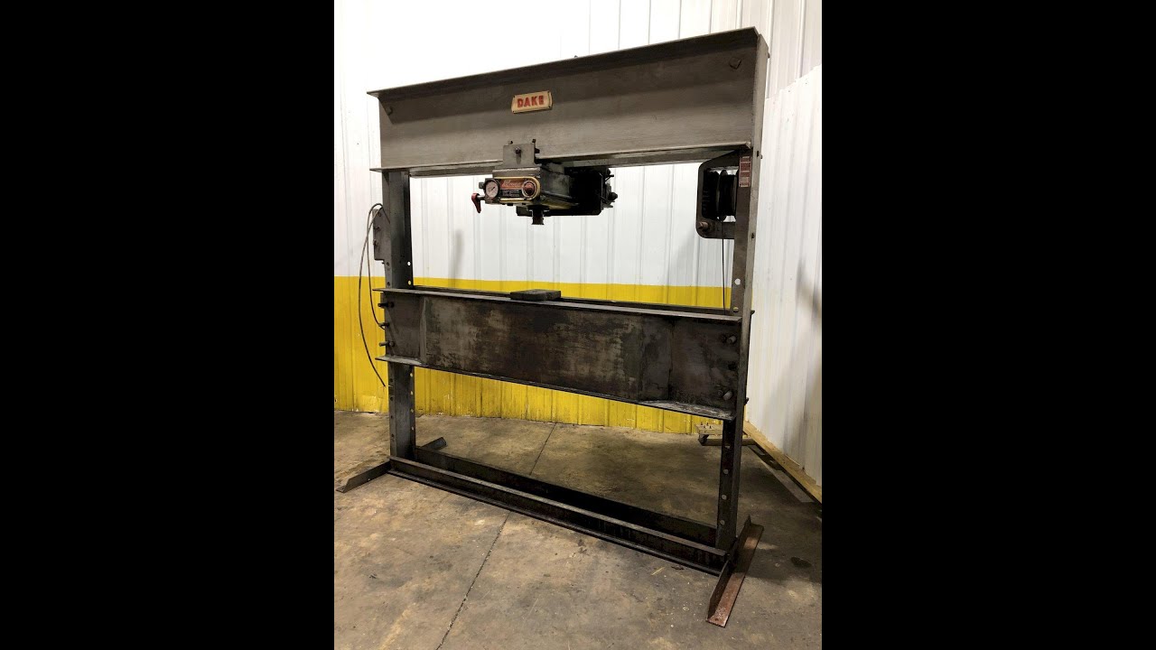 50 TON DAKE MODEL #5-096A ELEC-DRAULIC HYDRAULIC H FRAME PRESS: STOCK #17530SERIAL ................ 150136MODEL ................. 5-096ACAPACITY .............. 50 TONTYPE .................. ELEC-DRAULICBETWEEN UPRIGHTS ...... 84"BETWEEN BED CHANNELS .. 15"RAM TO TABLE .......... 5" TO 40"TABLE TRAVEL .......... 35"MOTOR ................. 2HP