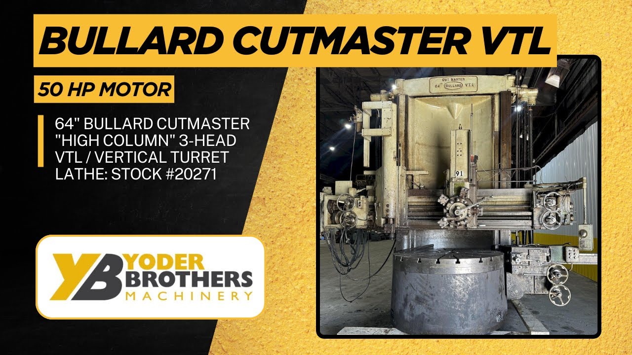 64" BULLARD CUTMASTER "HIGH COLUMN" 3-HEAD VTL / VERTICAL TURRET LATHE: STOCK #20271