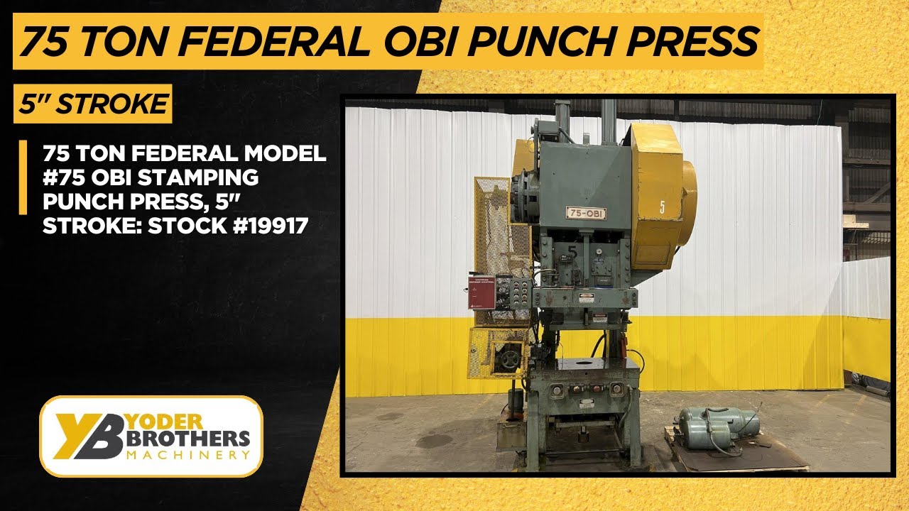 SERIAL ............... 75GA-102NEW .................. 1972MODEL ................ 75CAPACITY ............. 75 TONSTROKE ............... 5"DIE SPACE ............ 14-1/2"ADJUSTMENT ........... 4"BED .................. 24" X 32"BOLSTER THICKNESS .... 3.5"SPEED ................ 47 SPMTHROAT ............... 13"CONTROLS ............. PALM BUTTONS W/ WINTRESSCLUTCH & BRAKE ....... AIR