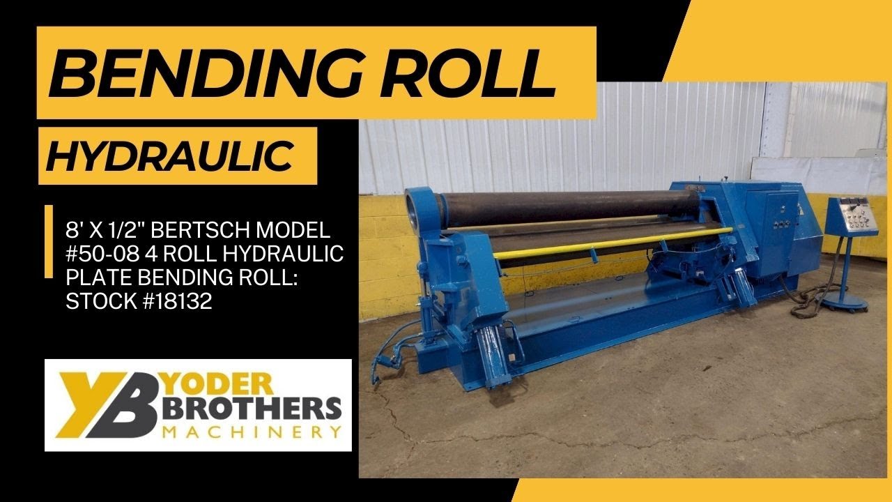 CAPACITY ..................... 1/2"TOP & BOTTOM ROLL DIAMETER ... 12"FRONT & BACK ROLL DIAMETER ... 8"LENGTH OF ROLLS .............. 100"CONTROL PANEL ................ YESDROP END ..................... HYDRAULICHYDRAULIC MOTOR .............. 10 HP