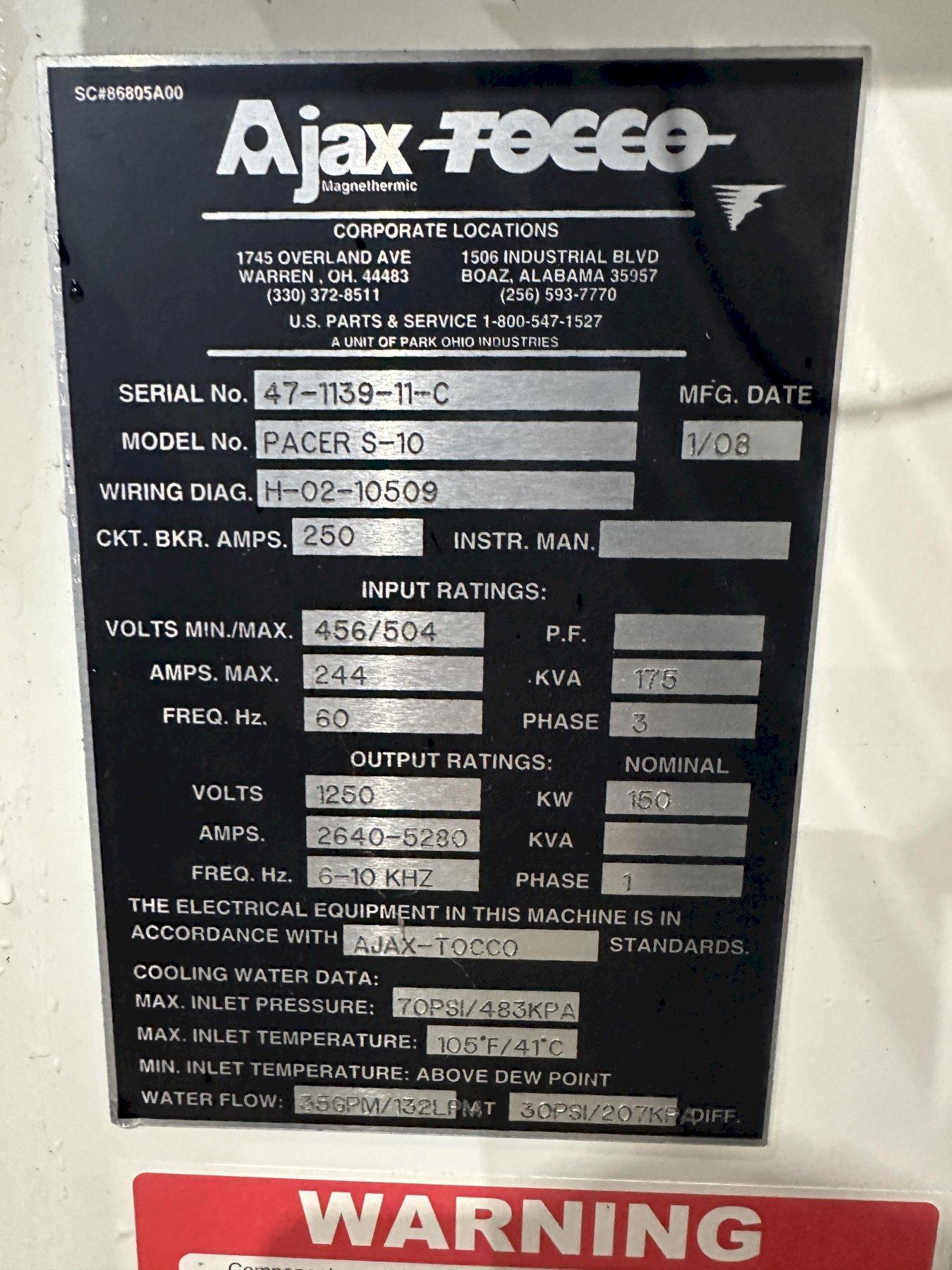 150 KVA AJAX-TOCCO MODEL PACER-S10 ANNEALING INDUCTION MACHINE: STOCK #22587