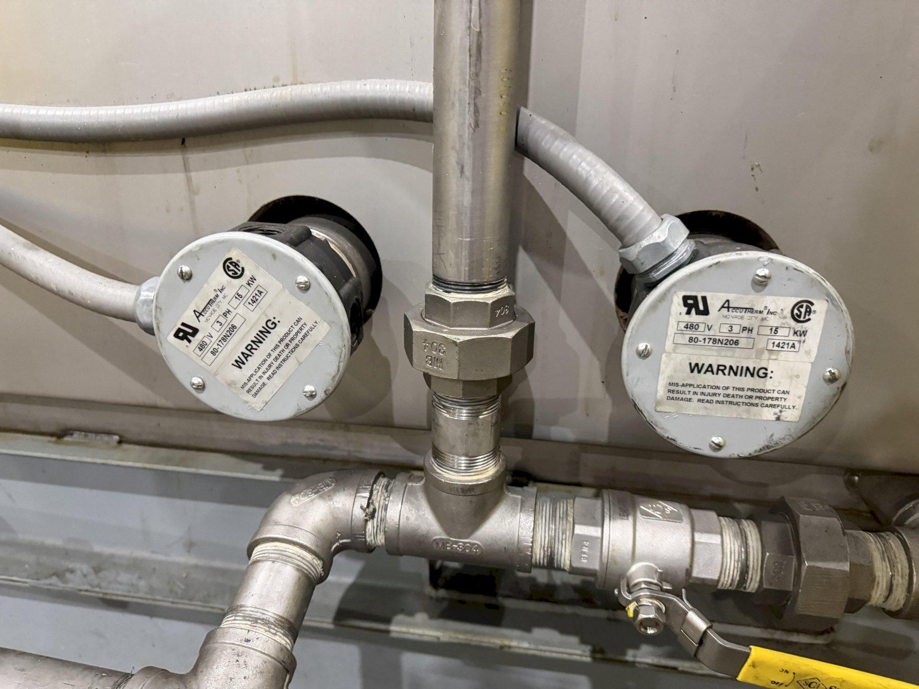 • Heating – Rinse: (1) 15 kW SS screw-plug heater