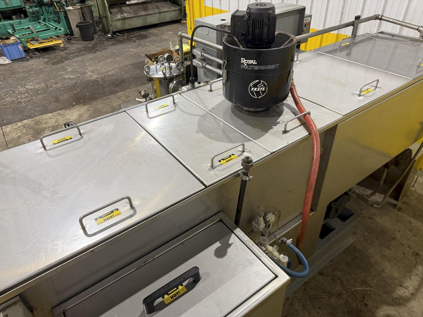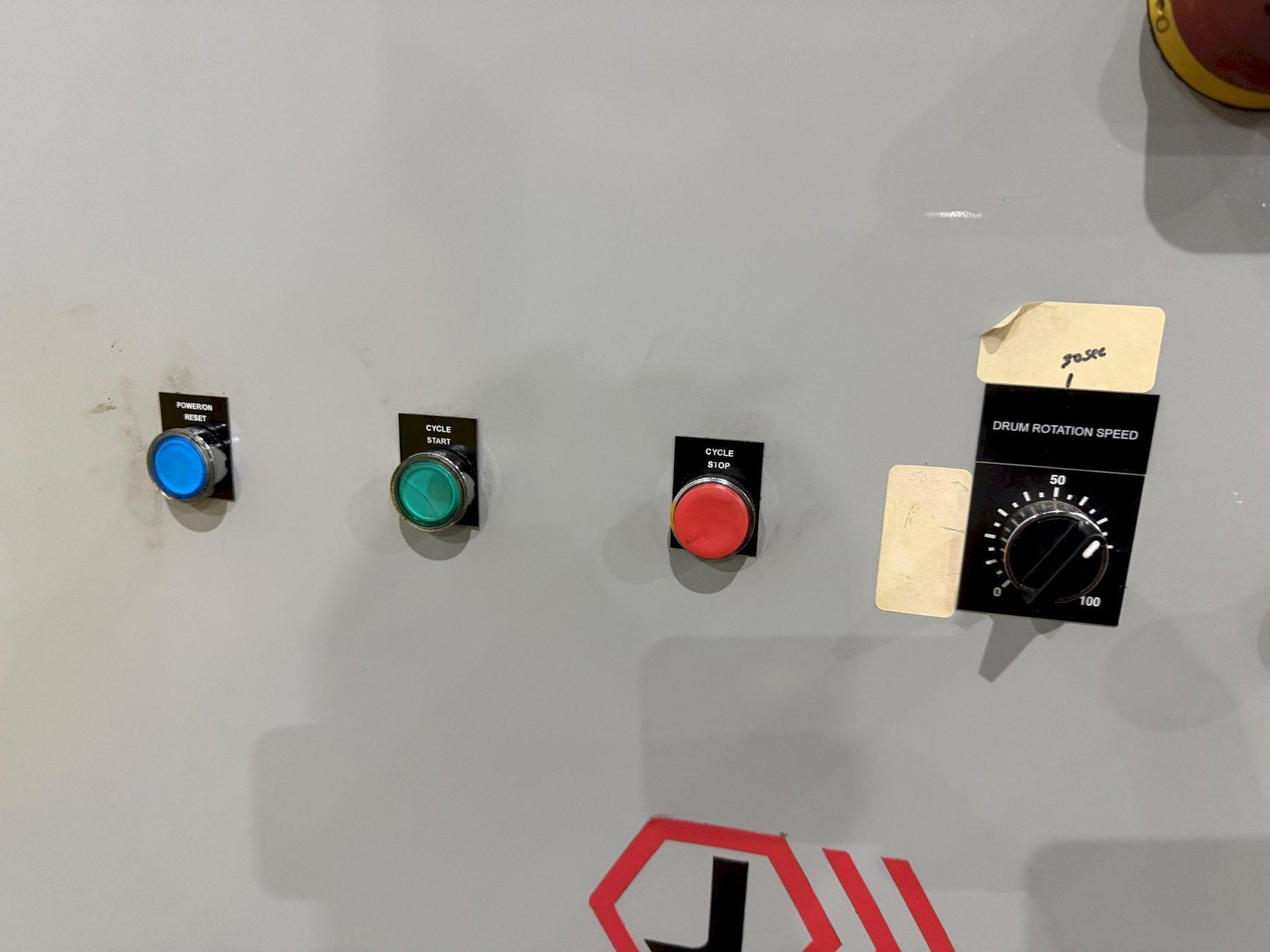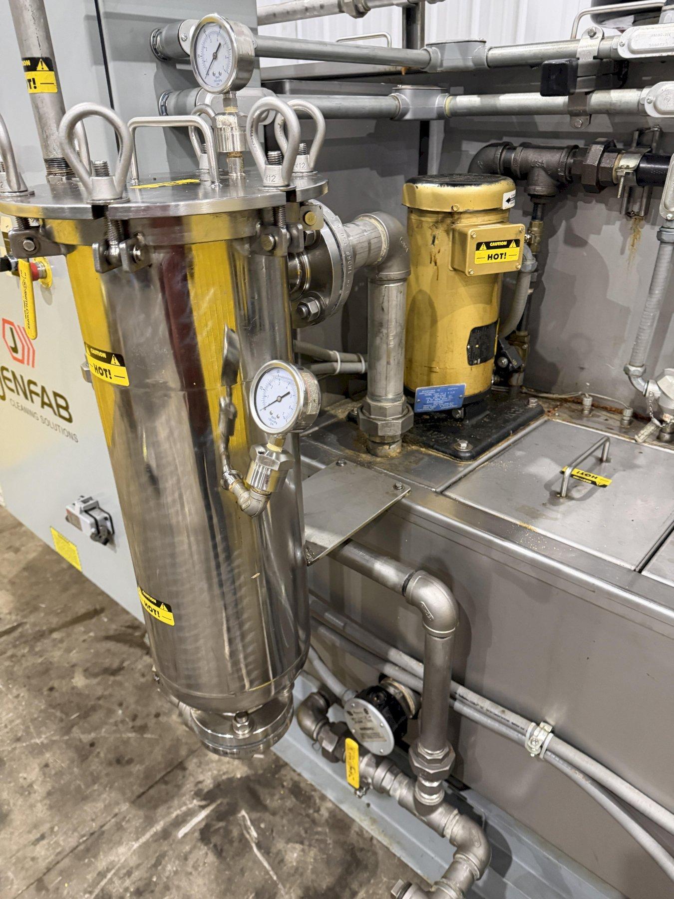 JENFAB LJ 19" Rotary Drum Washer – Wash / Rinse / Dry SystemThis unit features a 19" diameter, 304ss cylinder with 14 ga perforations with 0.25 holes designed to provide excellent drainage, filtration, and consistent processing performance. The cylinder incorporates a continuously welded helix with an 8" pitch and 3.5" height, ensuring smooth, controlled material movement and reliable conveying throughout the process cycle. To further enhance part exposure and process efficiency, the drum is equipped with 3/4" bent angle tumblers, 3 per revolution, delivering superior agitation, mixing, and turnover of components for more uniform results.