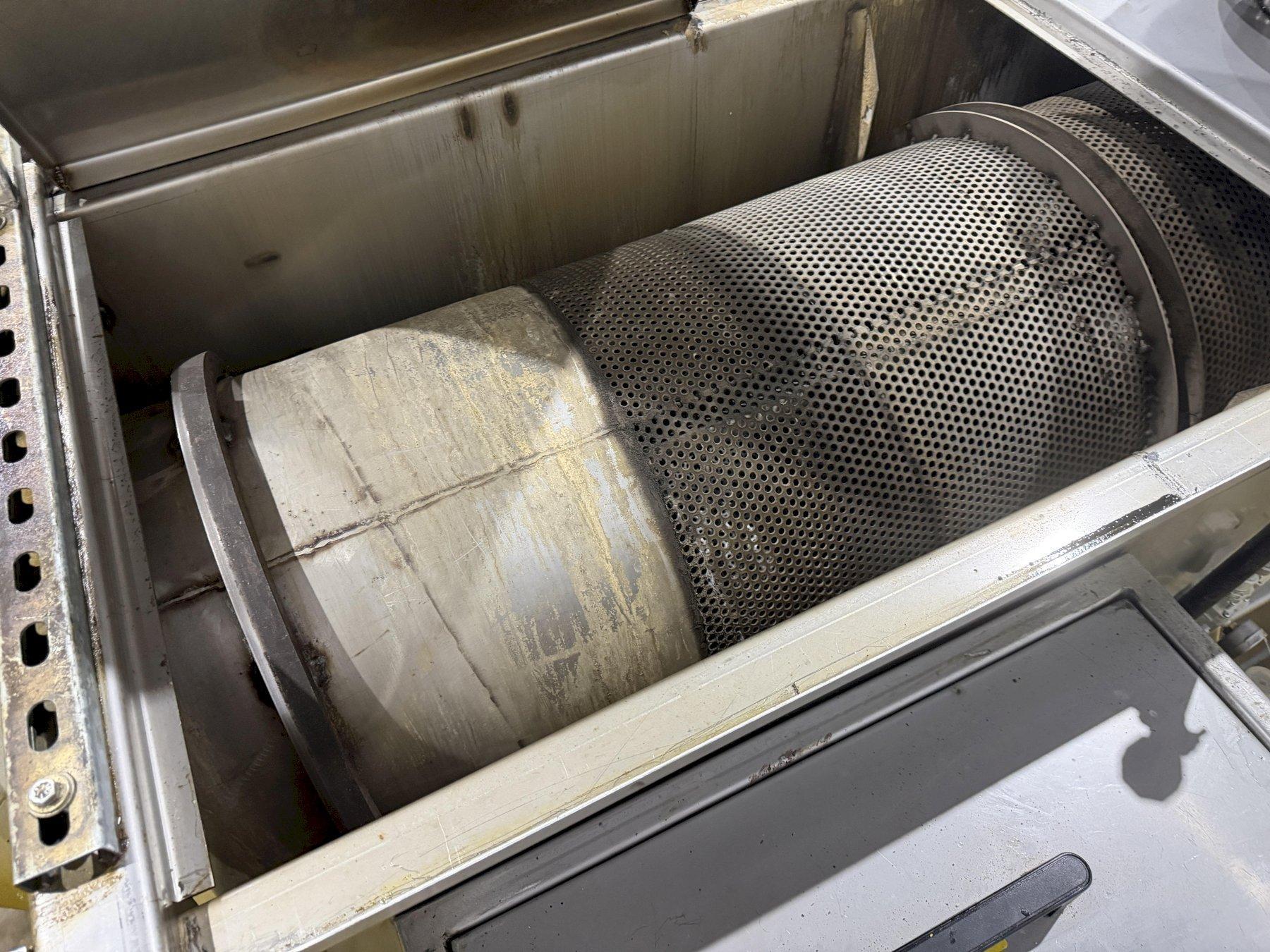 This unit features a 19" diameter, 304ss cylinder with 14 ga perforations with 0.25 holes designed to provide excellent drainage, filtration, and consistent processing performance. The cylinder incorporates a continuously welded helix with an 8" pitch and 3.5" height, ensuring smooth, controlled material movement and reliable conveying throughout the process cycle. To further enhance part exposure and process efficiency, the drum is equipped with 3/4" bent angle tumblers, 3 per revolution, delivering superior agitation, mixing, and turnover of components for more uniform results.