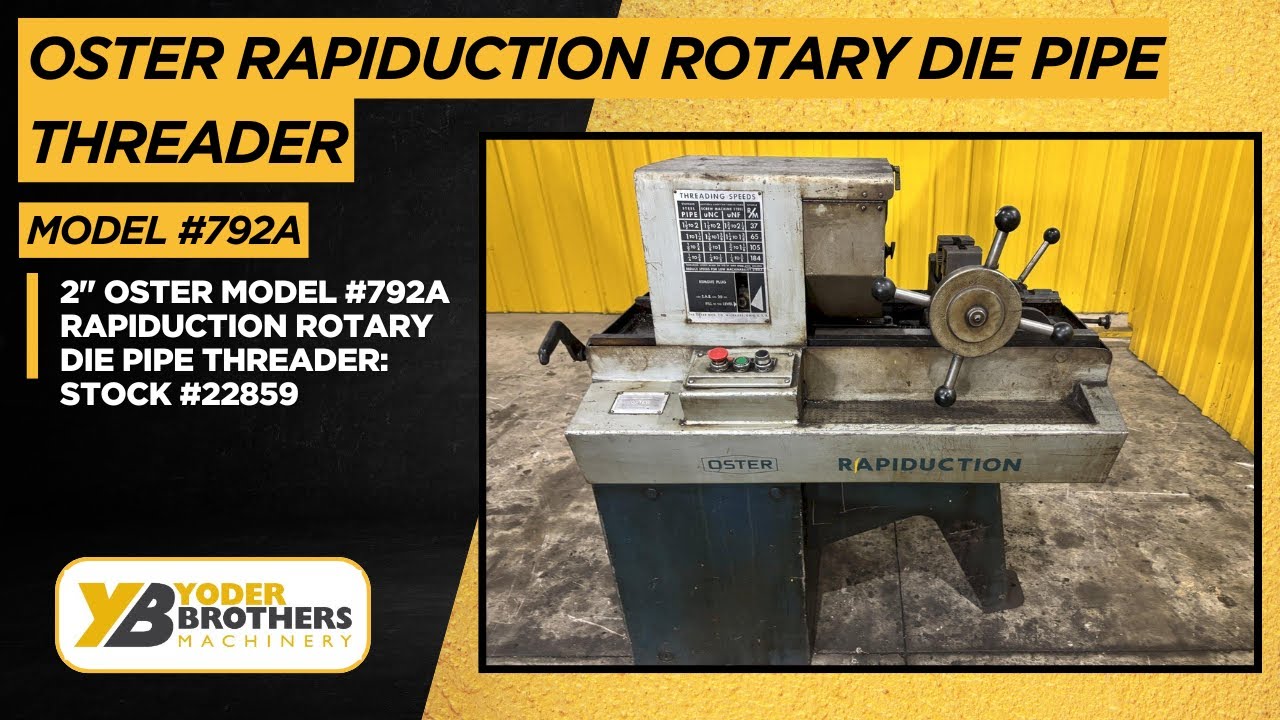 SERIAL ............................... 792A-TD-277MODEL ................................ 792A RAPIDUCTIONCAPACITY PIPE ........................ 1/4" TO 2"CAPACITY BOLT ........................ 1/8" TO 2"SPINDLE SPEEDS ....................... (4) 37, 65, 105 & 184 RPMSPINDLE BORE ......................... 2-1/2"NUMBER OF ROTATING HEADS ............. 4MAXIMUM THREAD LENGTH ................ 8-1/4" 1 SETTINGMAXIMUM CARRIAGE TRAVEL .............. 10"HEIGHT TO CENTER LINE OF SPINDLE ..... 40"COOLANT .............................. YESMOTOR ................................ 3 HORSEPOWER