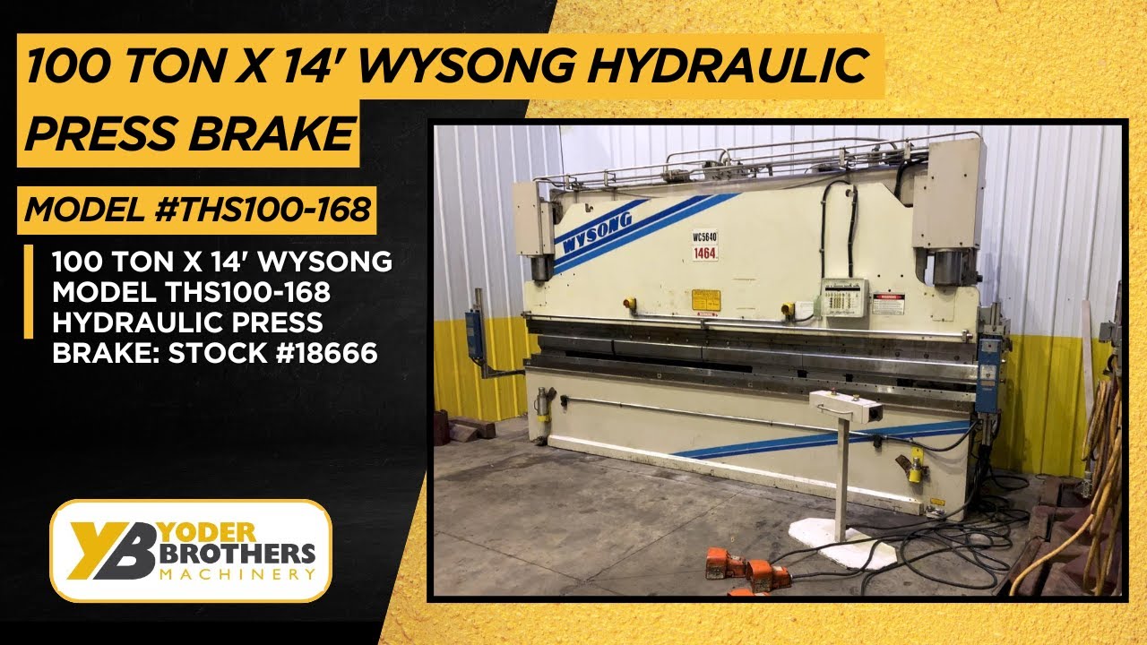 100 TON X 14' WYSONG MODEL THS100-168 HYDRAULIC PRESS BRAKE: STOCK #18666SERIAL ............ TH12-101MODEL ............. THS100-168TONNAGE RATING .... 100 TONSBED LENGHT ........ 168"BETWEEN HOUSINGS .. 150.5"STROKE ............ 8"ADJUSTMENT ........ 9"DIE SPACE ......... 17"BACK GAUGE ........ AUTOMEC Autogauge CNC 300CONTROLS .......... PALM BUTTON & FOOT PEDAL